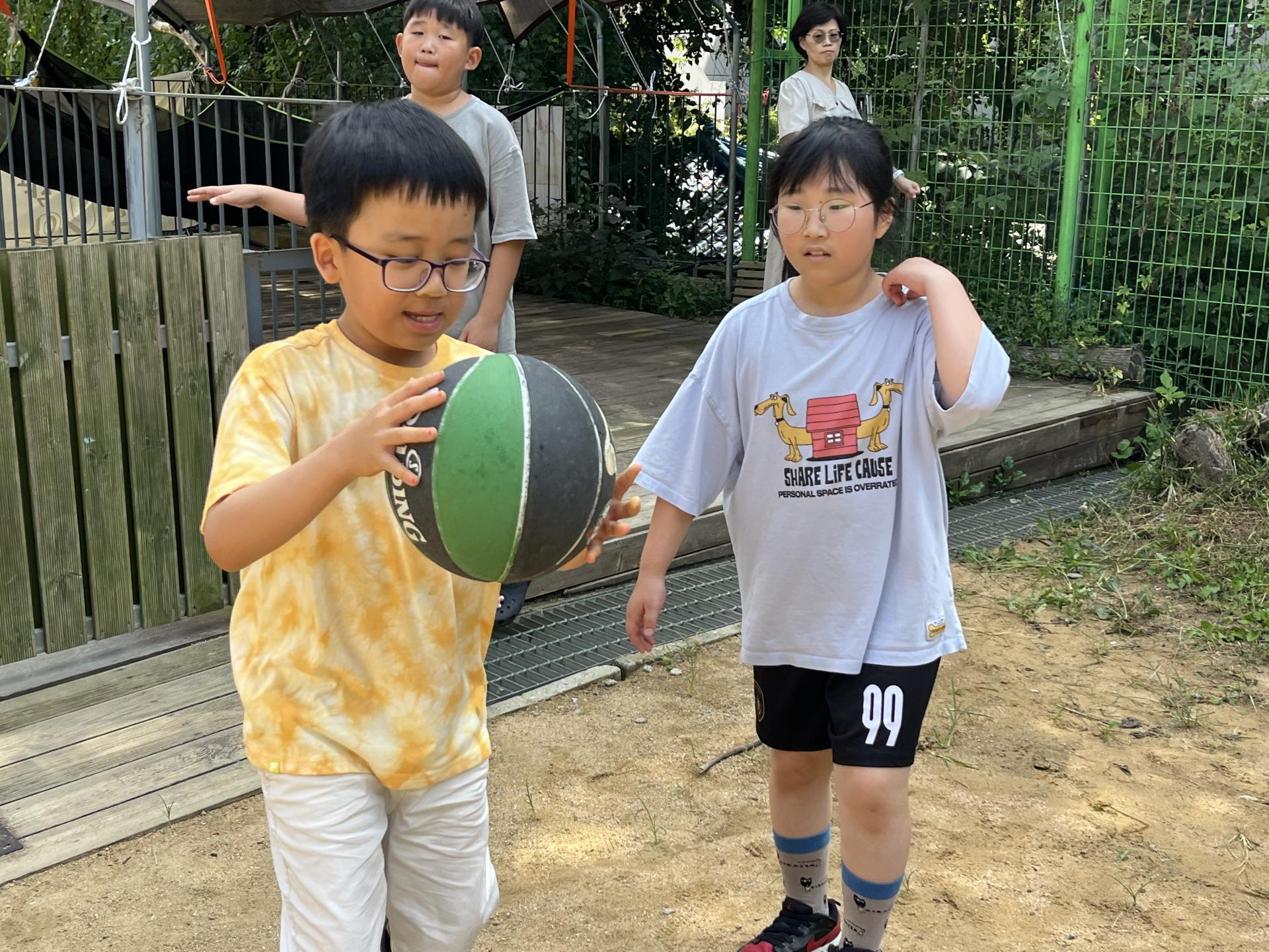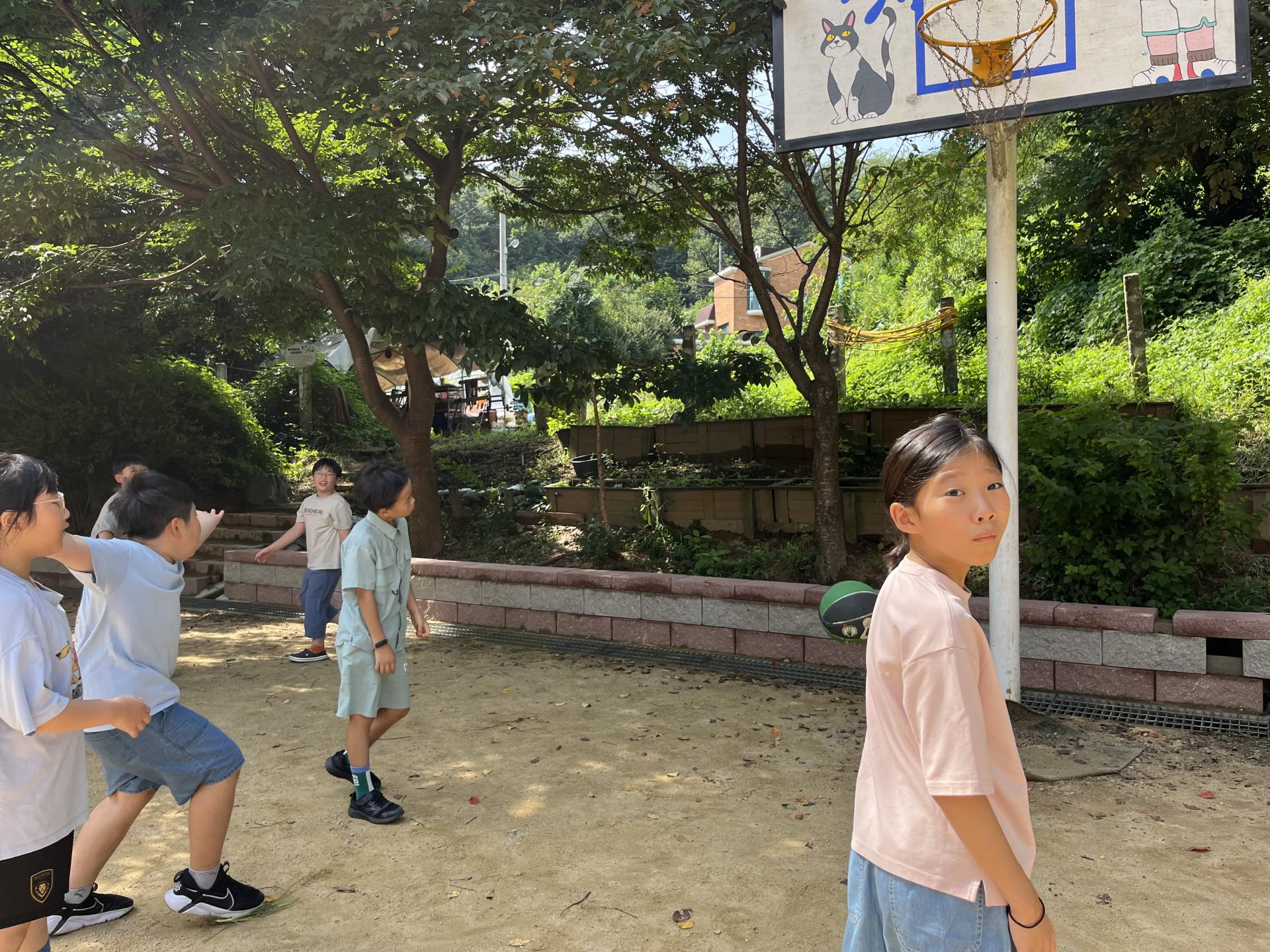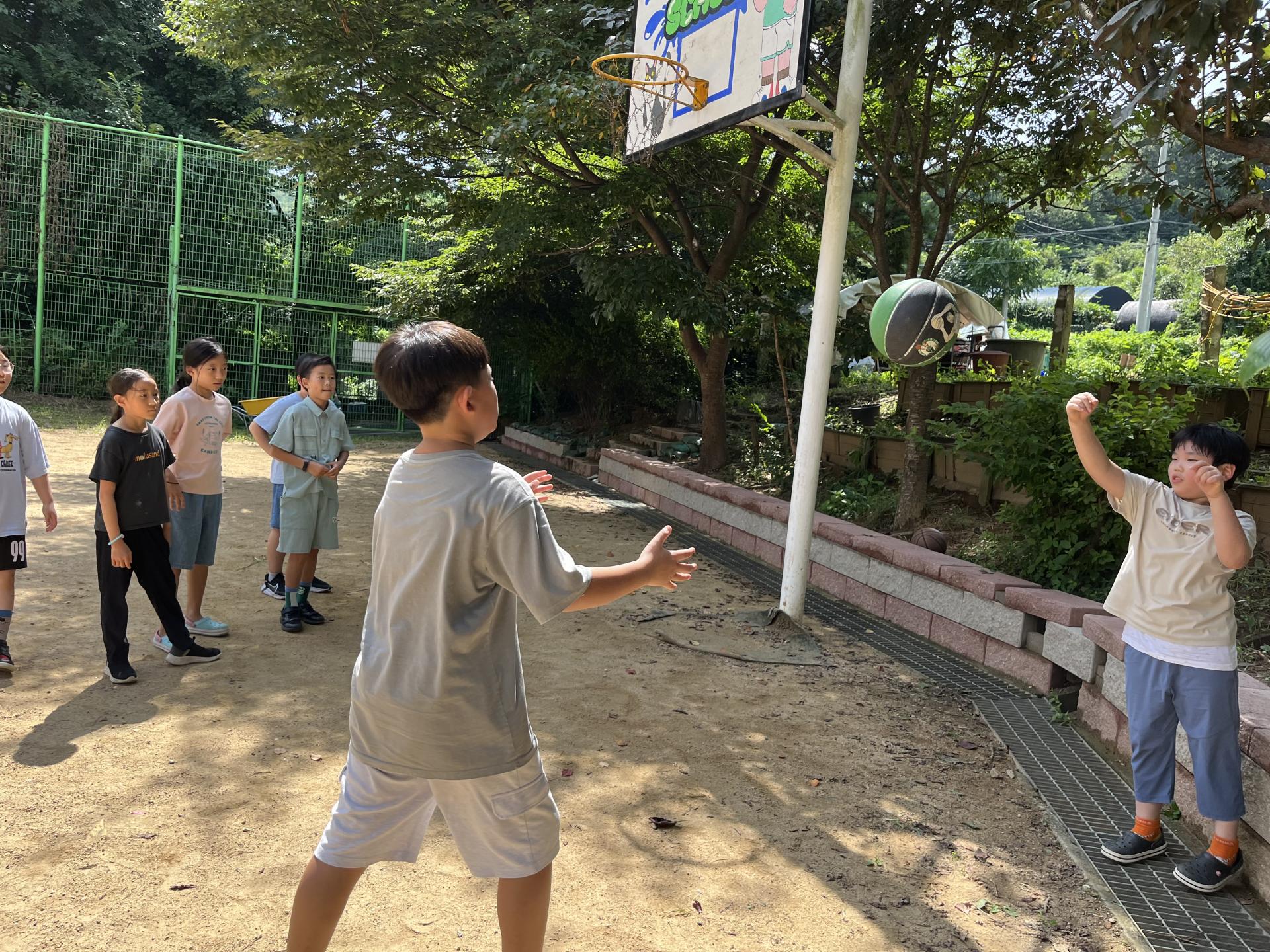 개학후 아이들의 역동적인 모습이 너무 보기 좋네요~~안그래도 주환이가 아이들이랑 농구해서 너무 좋았다고 하더라고요. 윤채는...봉타고 올라가서 슛하는건가요.ㅋㅋㅋㅋ윤글리~^^