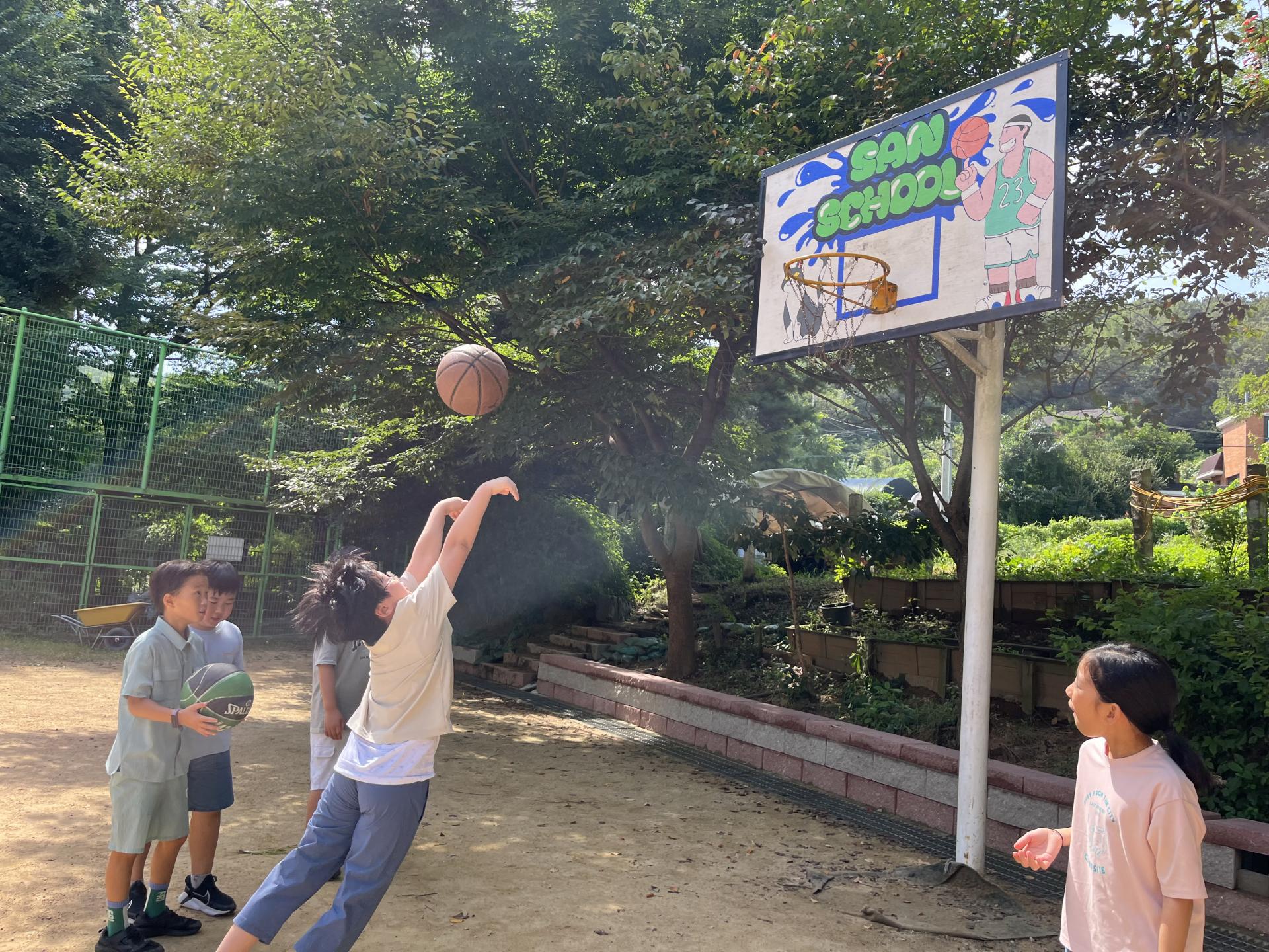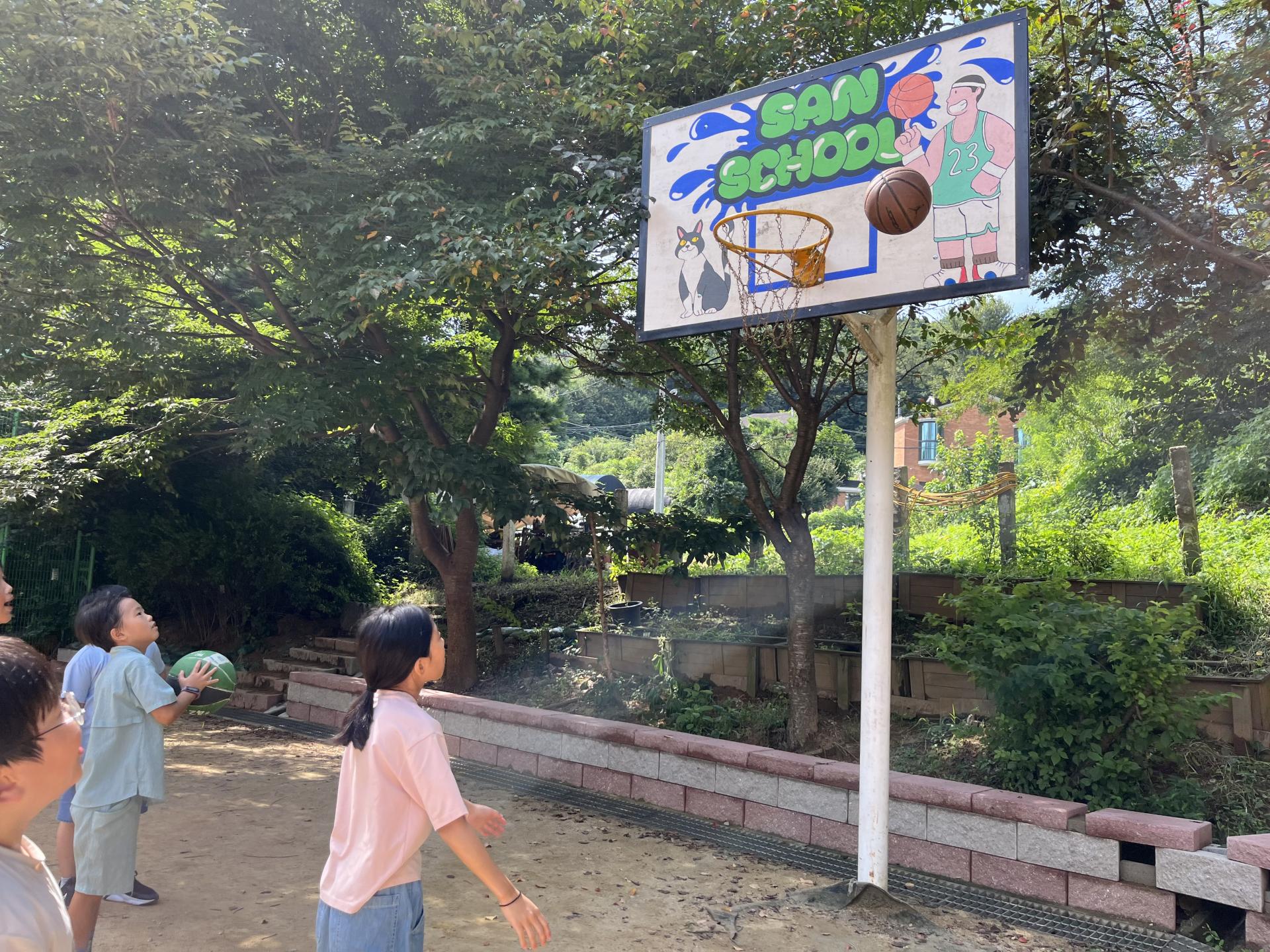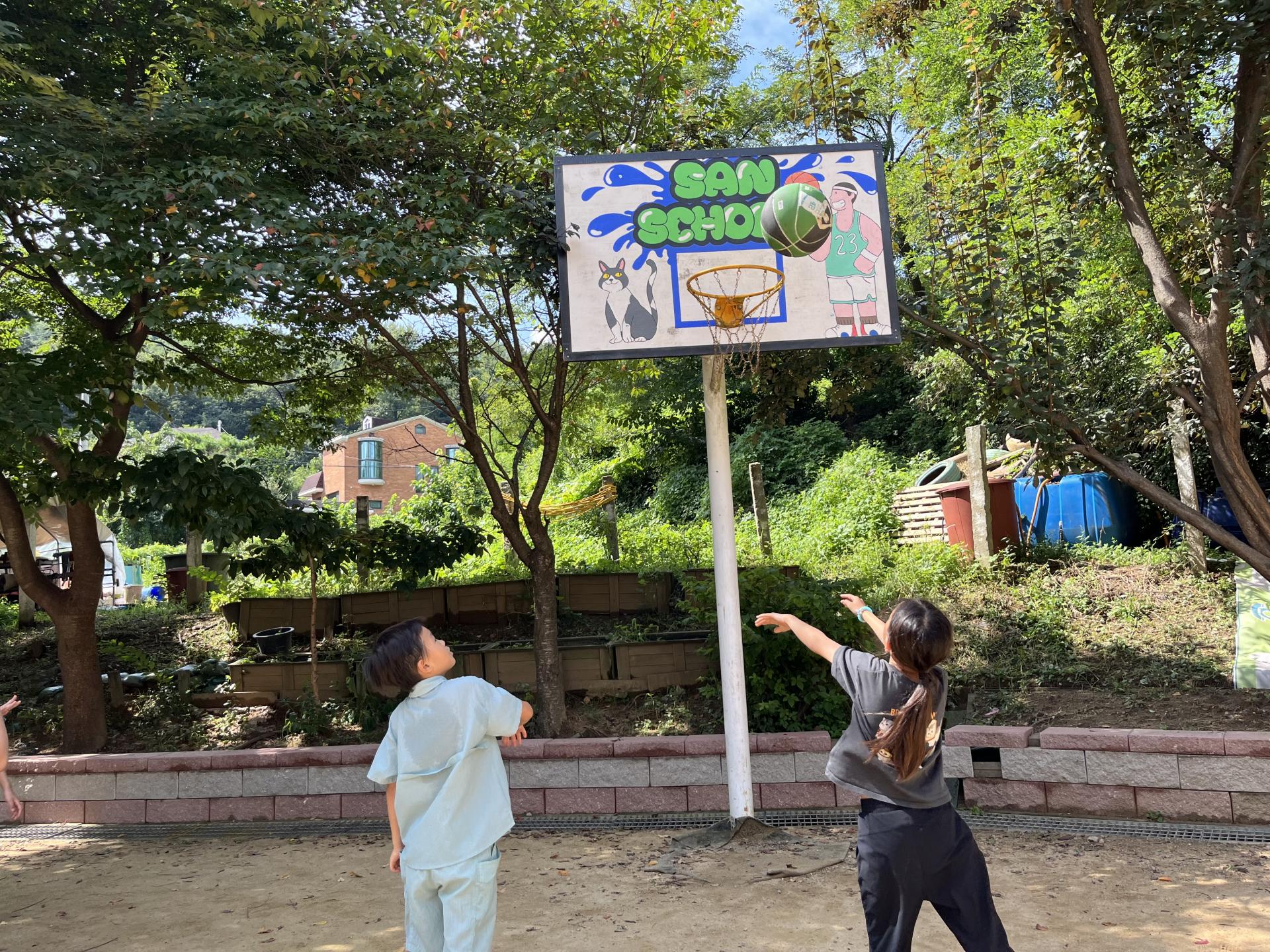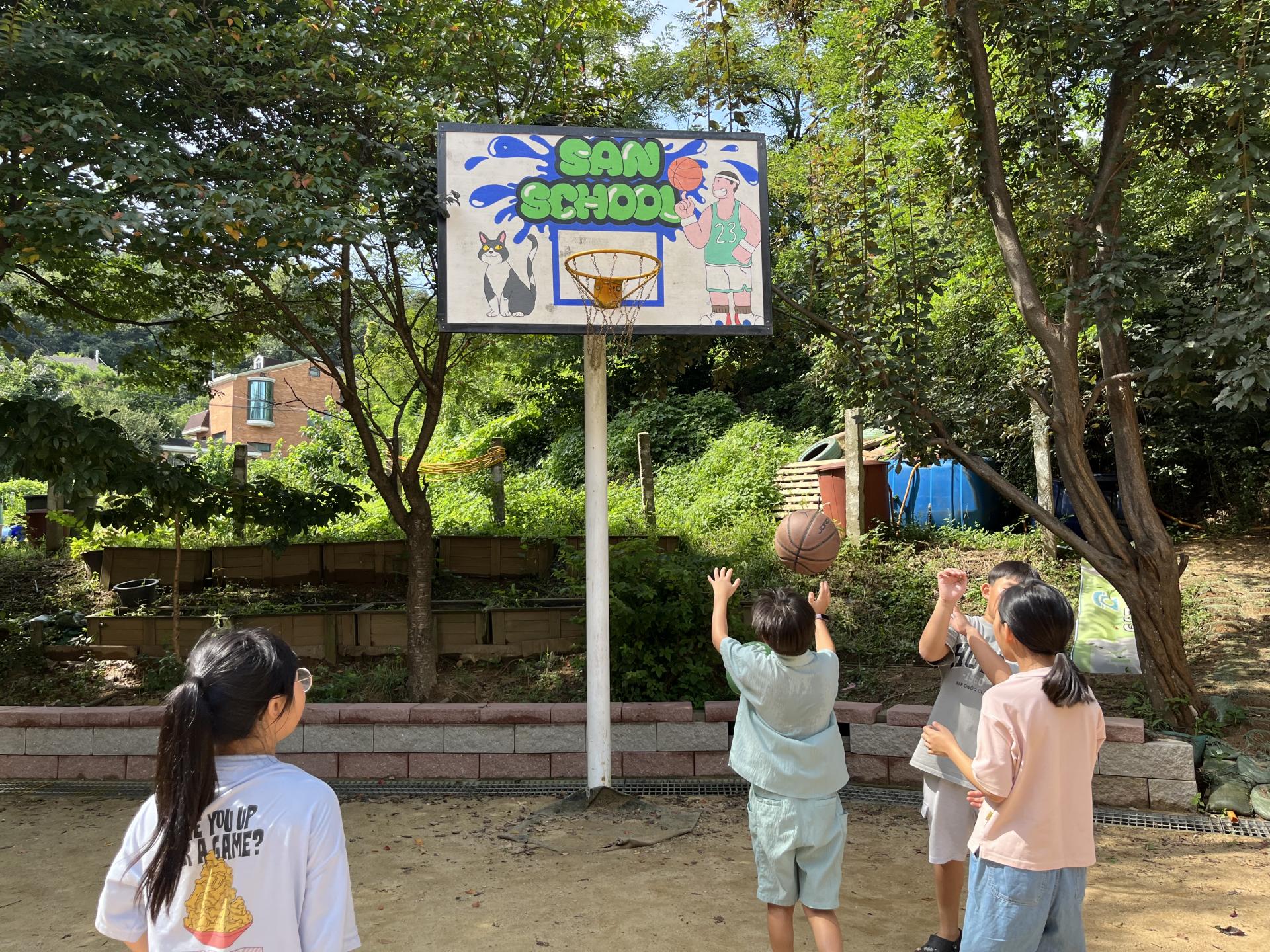 개학후 아이들의 역동적인 모습이 너무 보기 좋네요~~안그래도 주환이가 아이들이랑 농구해서 너무 좋았다고 하더라고요. 윤채는...봉타고 올라가서 슛하는건가요.ㅋㅋㅋㅋ윤글리~^^